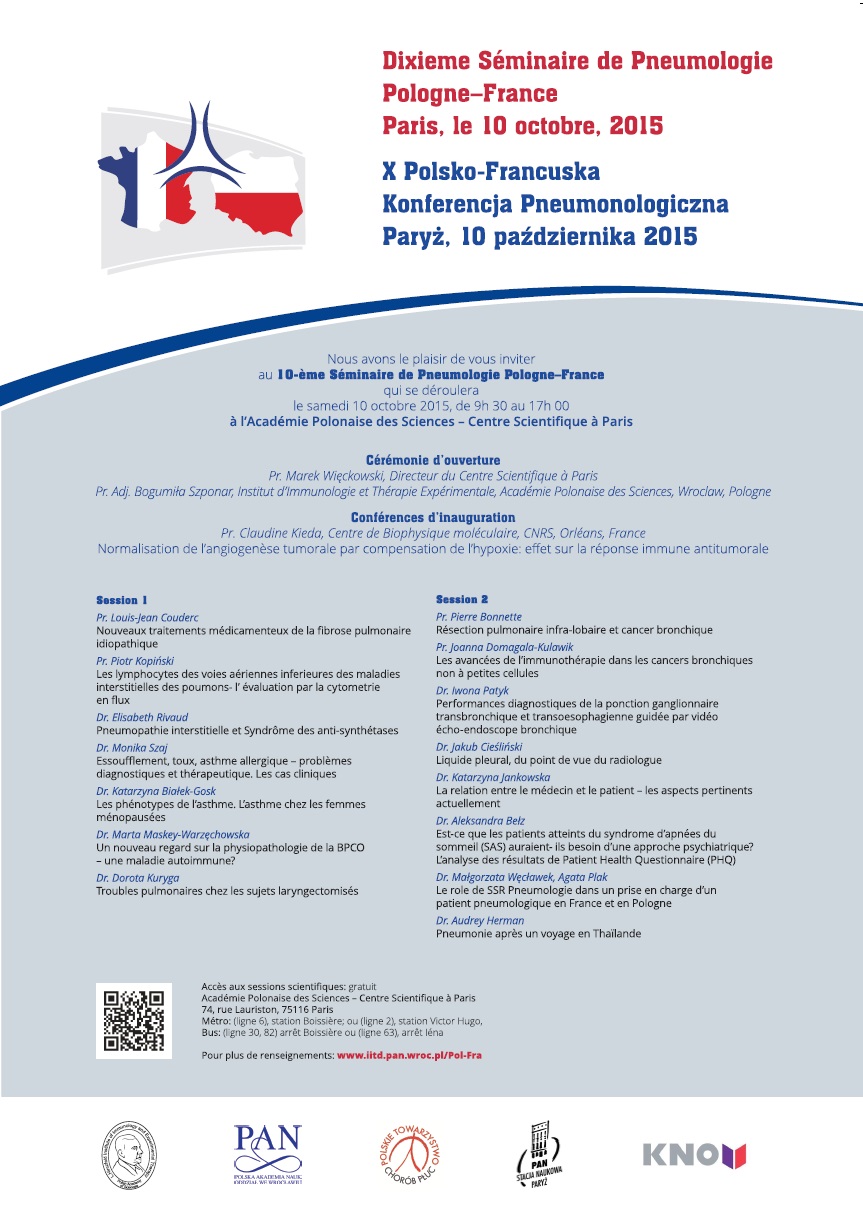 Dixieme Séminaire de Pneumologie Pologne–France / Polsko-Francuska Konferencja Pulmonologiczna
